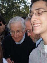 On 10/4, Noam Chomsky spoke at a Stanford Says No To War rally as a pit stop on his way to speak at Gunn HS, where the Peninsula Peace and Justice Center was holding a very large Chomsky event.